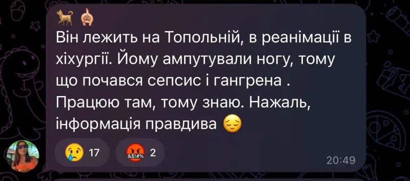 «Йому ногу ампутували. Він у тяжкому стані дуже».