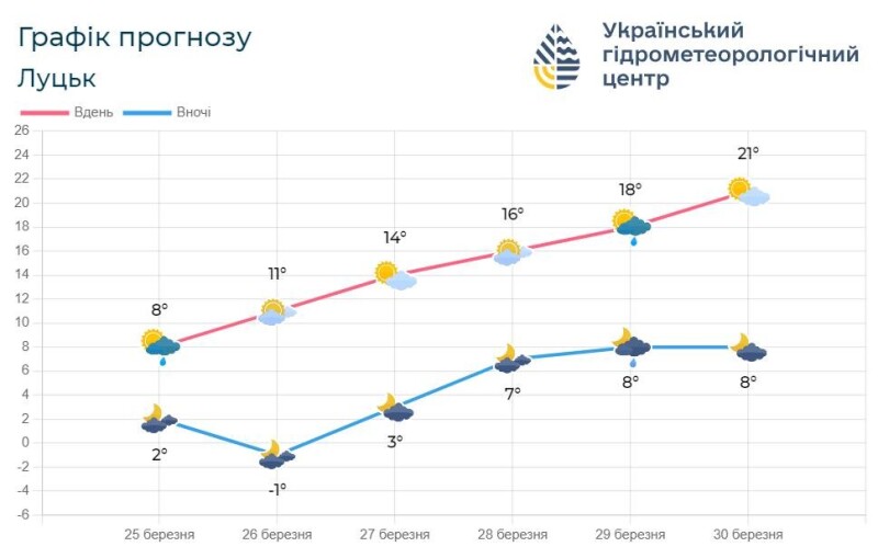 З 29 березня максимальна температура повітря сягатиме 17-22⁰тепла.