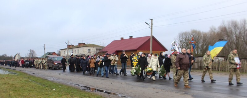 Напередодні ввечері, мешканці громади навколішках зустрічали домовину з тілом Воїна. Сьогодні у Свято-Хресто-Воздвиженському храмі помолилися за спокій душі відважного воїна та провели до місця вічного спочинку з усіма військовими почестями рідні, друзі, односельчани, представники влади та військові побратими.