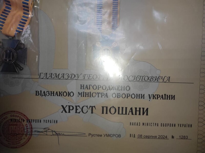 18 жовтня 2024 року, під час пленарного засідання XXXVIII сесії VIII скликання Цуманської селищної ради, заступник начальника Луцького районного центру комплектування і соціальної підтримки, Юрій Хом'як, вручив представнику родини загиблого Воїна - Героя Георгія Йосиповича Гламазди відзнаку Міністра оборони України — Хрест Пошани.