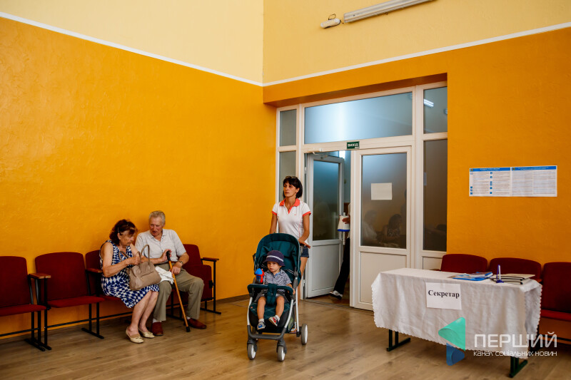 На жаль, черги побачити не вдалось ніде. Та все ж на дільниці приходять і люди поважного віку, і молодь. Багато хто – з дітьми, а дехто – навіть з домашніми улюбленцями. Деякі члени дільниць прийшли на роботу у вишиванках.