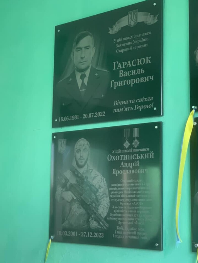 Сьогодні, 19 грудня, у Берестечківському ліцеї відбулося урочисте відкриття меморіальних дошок в честь загиблих Героїв, випускників закладу Андрію Охотинському та Василю Гарасюку.