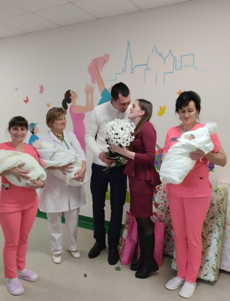 Напередодні виписки, розділити радість батьків з нагоди народження трьох синочків, до перинатального центру приїхали секретар Берестечівської міськради Орися Максимець і начальниця служби у справах дітей Ольга Градова.