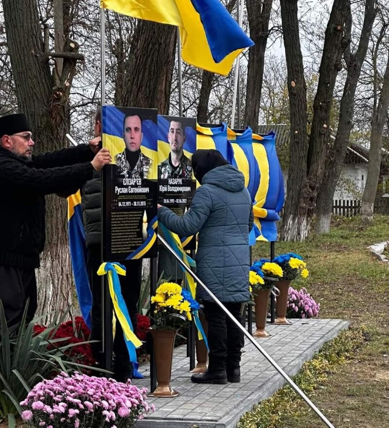 Хвилиною мовчання односельці вшанували пам’ять загиблих захисників України, а почесну місію відкриття стел надали найріднішим Героїв.