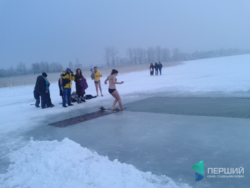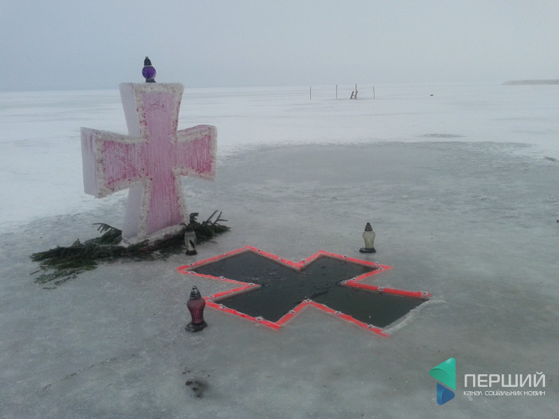 Освячення води на перший день Водохреща відбувалось особливо урочисто. У багатьох селах вирубували на водоймах хреста з льоду і поливали його буряковим квасом. Прикрашали його стрічками та сухоцвітом. Навколо хрестів подекуди ставили ялинки та інші хвойні дерева.
