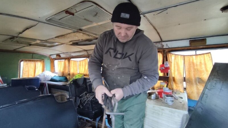 Чоловік у будні працює санітаром у психлікарні, а у вихідні клопочеться у своїй майстерні. Коли є електроенергія, займається зварювальними роботами.