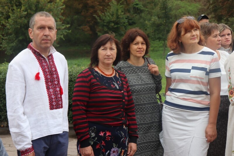 На урочистості прибули десятки містян у вишиванках. Прапор підняли під акомпанемент військового оркестру.