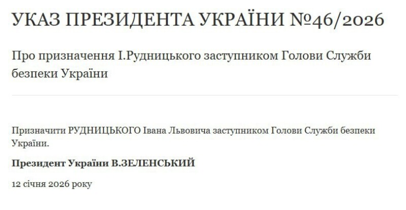 Нагадаємо, сьогодні ми повідомляли про те, що Рудницький буде звільнений з посади голови Волинської обласної військової адміністації, бо його збираються призначити на посаду заступника голови Служби безпеки України. Тепер наказ з’явився на сайті президента.