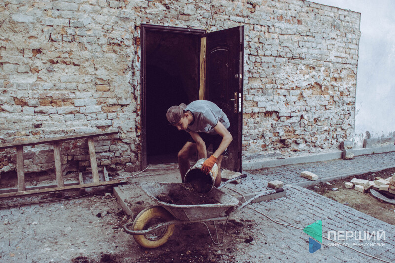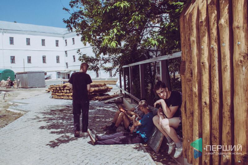 Дивлячись на суворий, аж холодний фасад колишнього кляштору єзуїтів, а нині коледжу НУХТ, ніколи не скажеш, що за його стінами, у дворі, кипить така шалена робота. Масштаби вражають. І поки я міряю кроками площу двору та територію під вежею та старими мурами, що ще недавно ховалися за непролазними хащами, моя уява вже будує тут до холери класну локацію. Аж неочікувано класну.