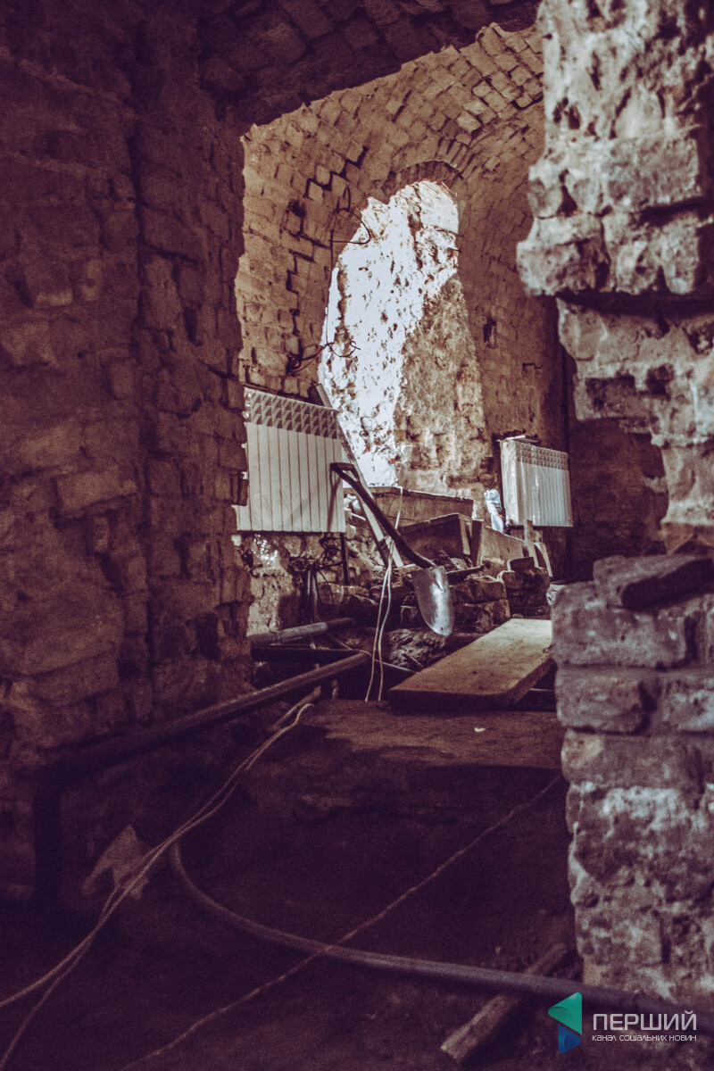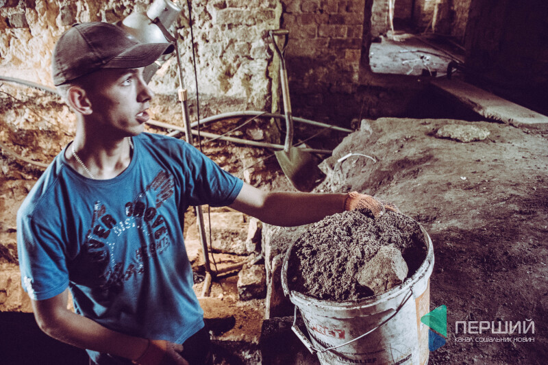 - Місяць тому того всього не було. Просто була підлога і все. До рівня труби тут була земля. На цьому всі історичні пізнання закінчувалися, - розповідає Віктор Баюк і показує на чорний слід на стіні – межі між підлогою і невідомістю.