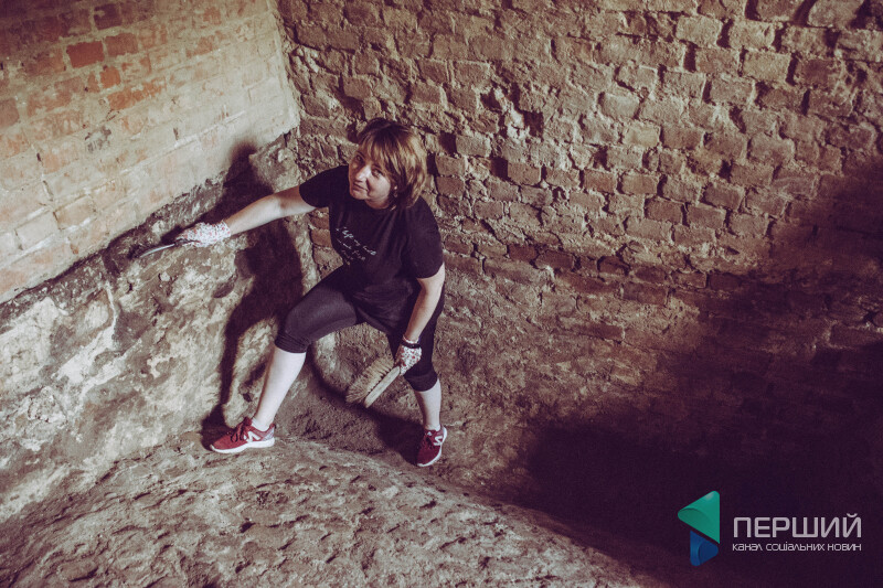 Ще кілька відер землі, ще трохи роботи щітками – і нам відкривається оголена від нашарувань історії стіна та частина склепіння. Тепер ніхто з першого погляду не посміє сказати, що то просто земля, як мені здавалося спочатку.