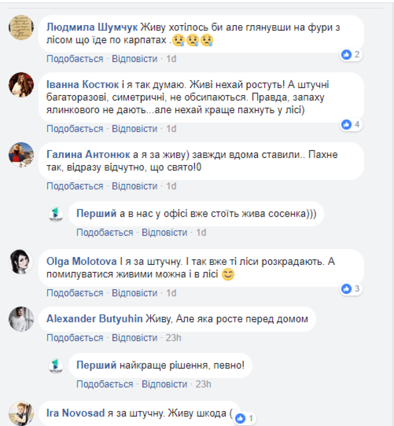 54% учасників надають перевагу штучним ялинкам, 46% полюбляють живі.