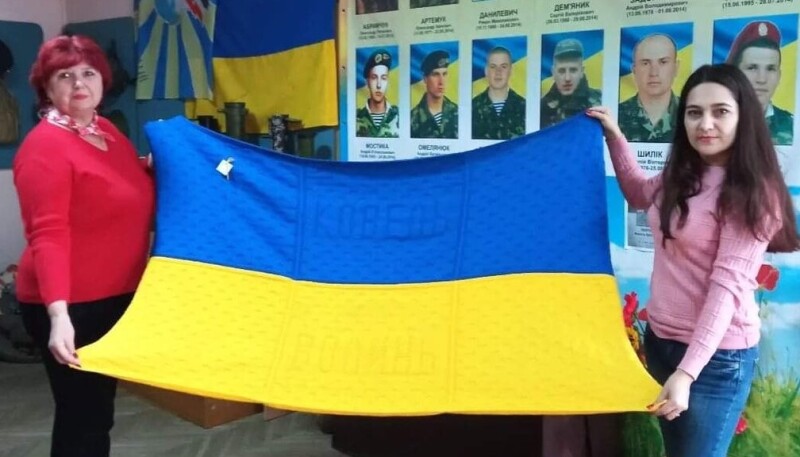 Як розповіла Євгенія Мороз, для проєкту, авторами якого були ковельчани, знадобилося 400 в'язаних клаптиків: "Загалом було 2400 квадратів, які з`єднувалися в пледи, а згодом в прапор", – розповіла головна зберігачка фондів Мирослава Мороз.