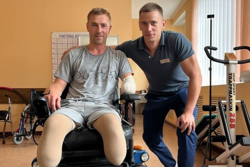 Кожен м’яз болів, бо я ж скільки часу був то на ліжкові, то на возику. Стати було дуже важко, тим більше все одрізане було. І кісточки боліли, і м’язи боліли. Біля поручнів спочатку ходив, десь за кілька днів за ті поручні тримаючись вже ходив помаленьку. Через тиждень певно, то вже сам з паличкою, і так розходився.