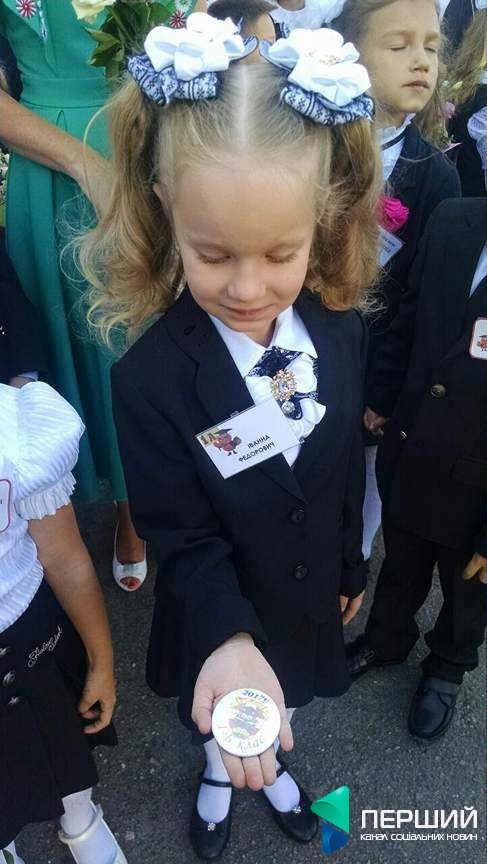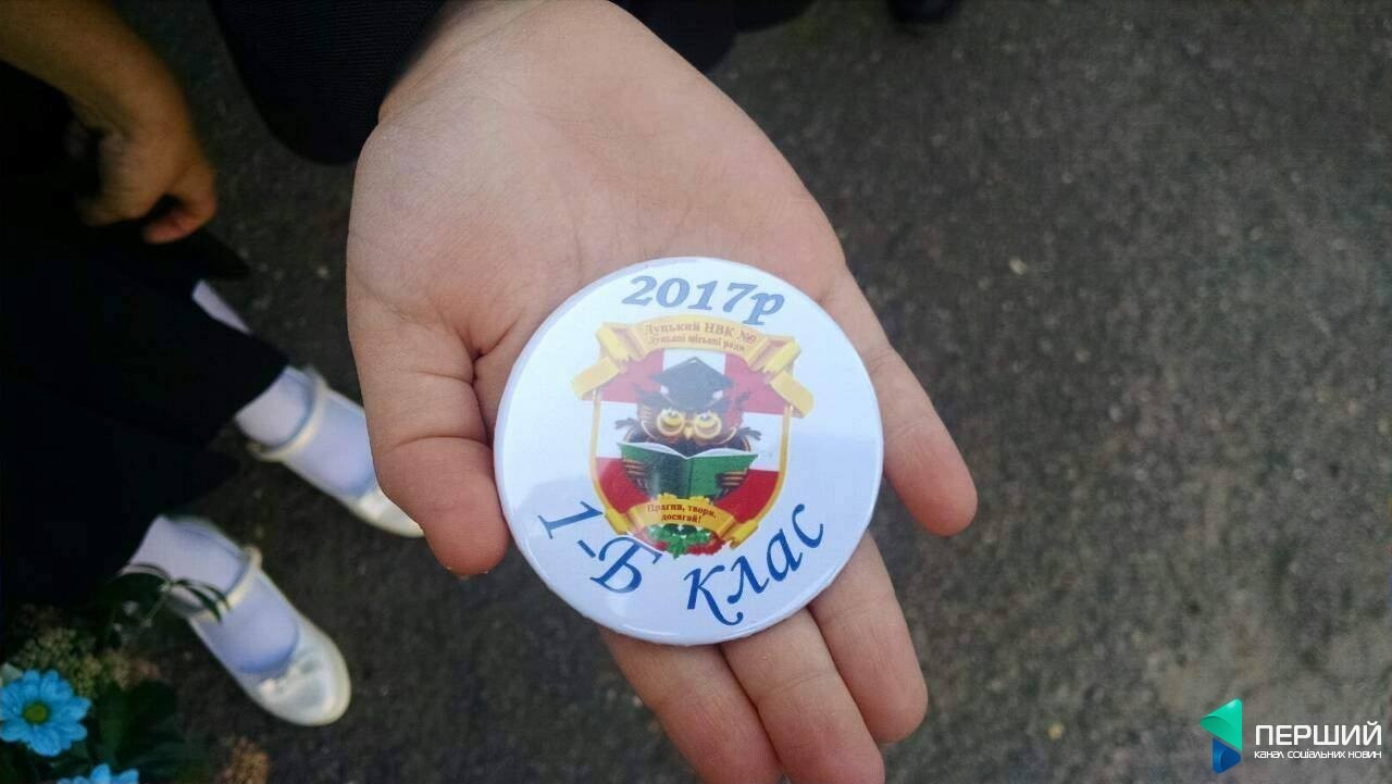 Одинадцятикласники презентували першачкам подарунки – значки з емблемою школи і назвою класу.