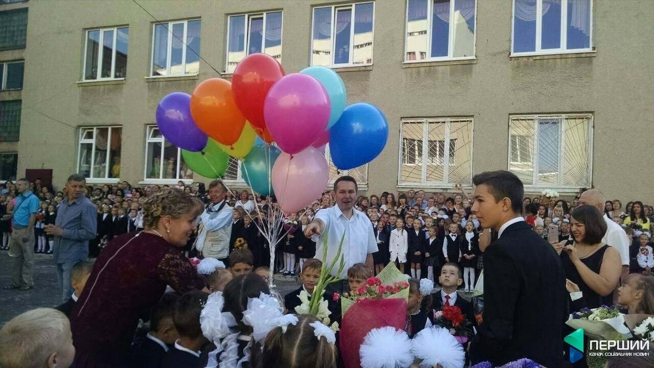 У небо випустили десятки кольорових кульок – на добрий початок нового навчального року.