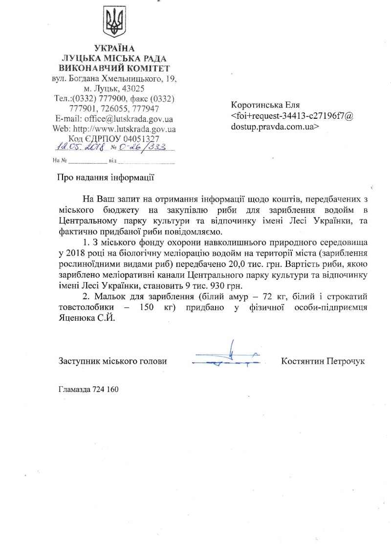 Запуск цих мальків обійшовся бюджету в 9 930 гривень. В цілому ж на біологічну меліорацію водойм на 2018-й рік виділили 20 тисяч гривень.