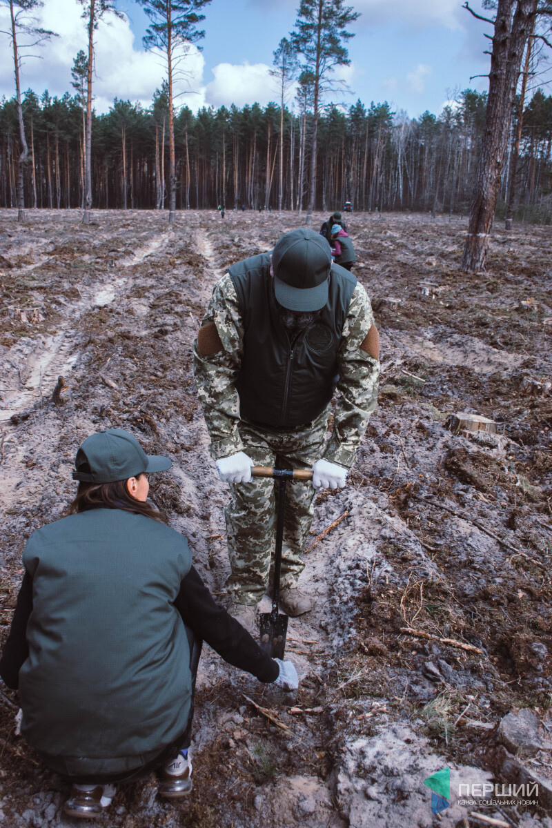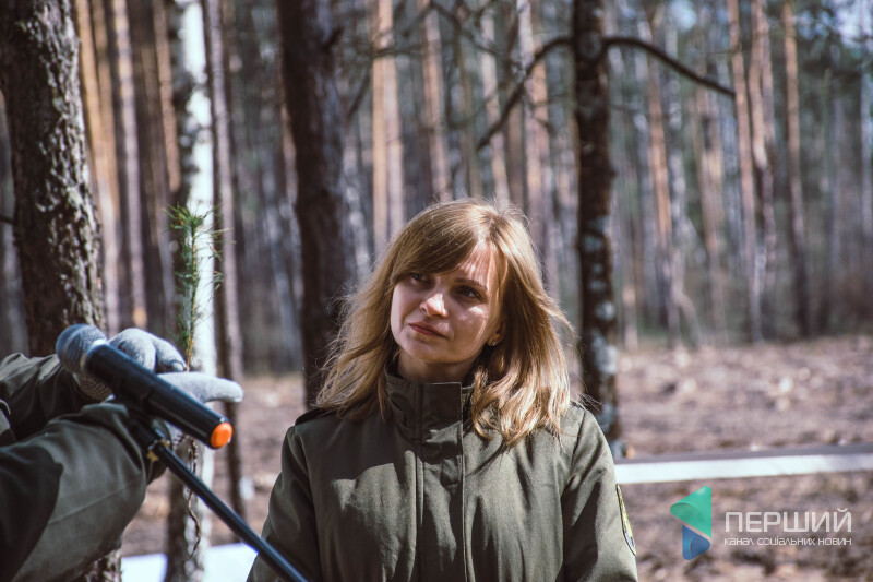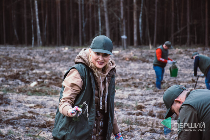 Вона була в кедах і цього дня садила рядок сосни у лісі під Галузією із головним лісівником Волині Олександром Кватирком.