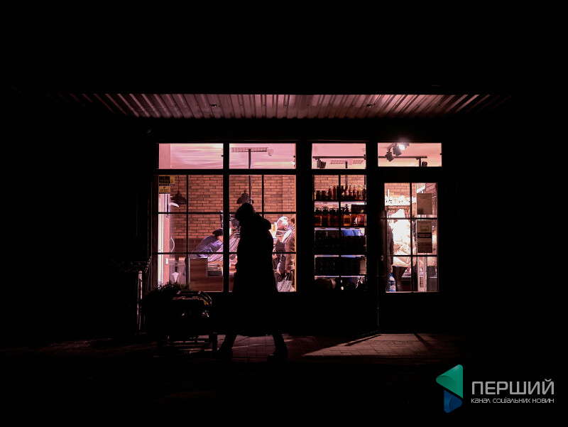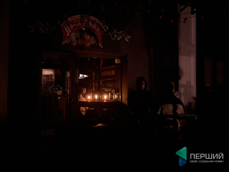 Місто жило трохи дивним життям. Мало в яких вікнах горіли свічки. Тролейбуси стояли на дорогах і виглядали трохи апокаліптично. Дуже гріло світло у вікнах ресторацій та кафешок. Ми тішилися і крізь вікна фотографували людей при свічках у кафе, це був якийсь вогонь життя.