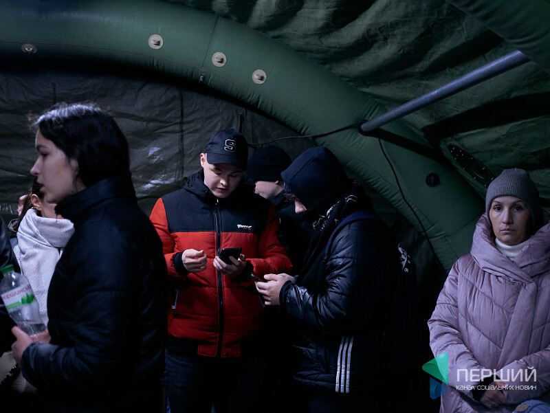 – Люди стали йти, як тільки пролунав сигнал повітряної тривоги, а після відбою взагалі масово. Тоді ми вже почали додавати переноски. Наплив величезний, черга є, самі бачите. Зразу було більш напружено, зараз трохи спокійніше, всі чекають, ми робимо максимум можливого, -  пояснював старший прапорщик Володимир Чабан.