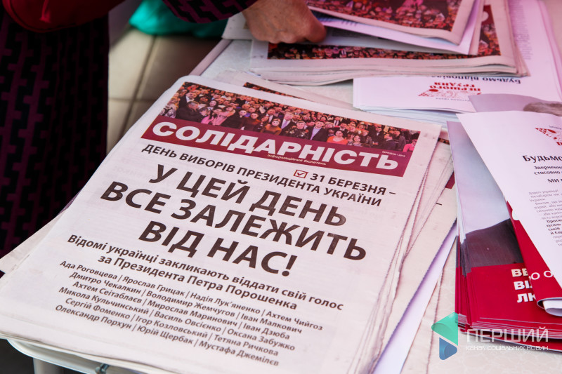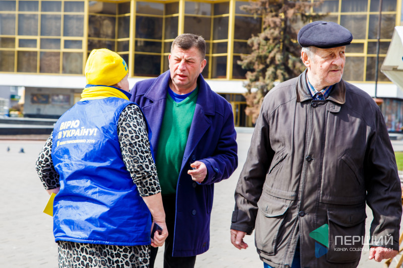 Ми почали з самісінького серця Луцька, з Театрального майдану. 29 березня. 13-та година. Майданом походжає вуличний гітарист Муха і бренькає щось «нетематичне». Народ – як у мурашнику. На вказівником з цікавими місцями в Луцьку тріпочуться прапори: туди підеш – «Свобода», сюди – «Порошенко»…
