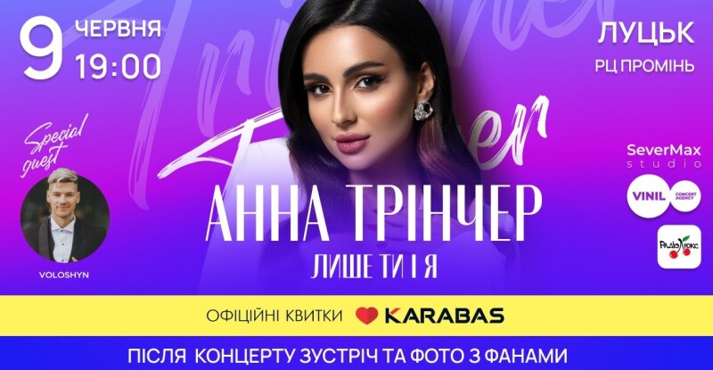 9 червня о 19:00 в РЦ «Промінь» у Луцьку відбудеться концерт співачки Анни Трінчер.