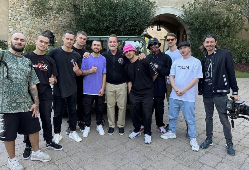 Арнольд Шварценеггер зустрівся з музикантами KALUSH Orchestra під час перебування українців у США, де зараз переможці конкурсу Євробачення 2022 перебувають на гастролях.