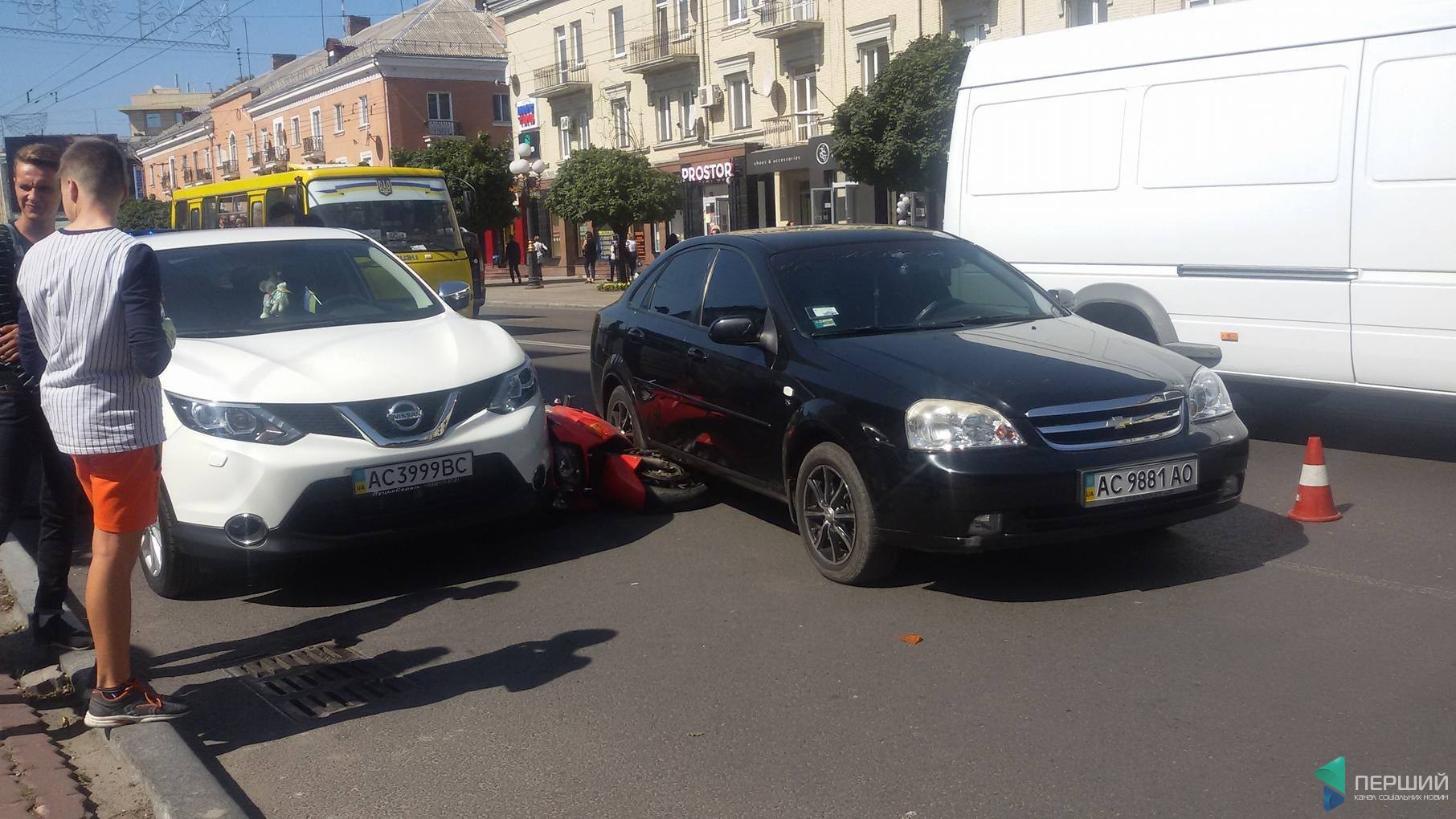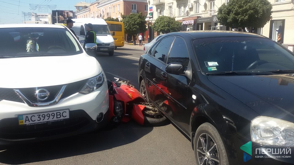 На проспекті Волі у Луцьку сталася ДТП за участі мотицикла і двох автівок – Нісана та Шевроле.