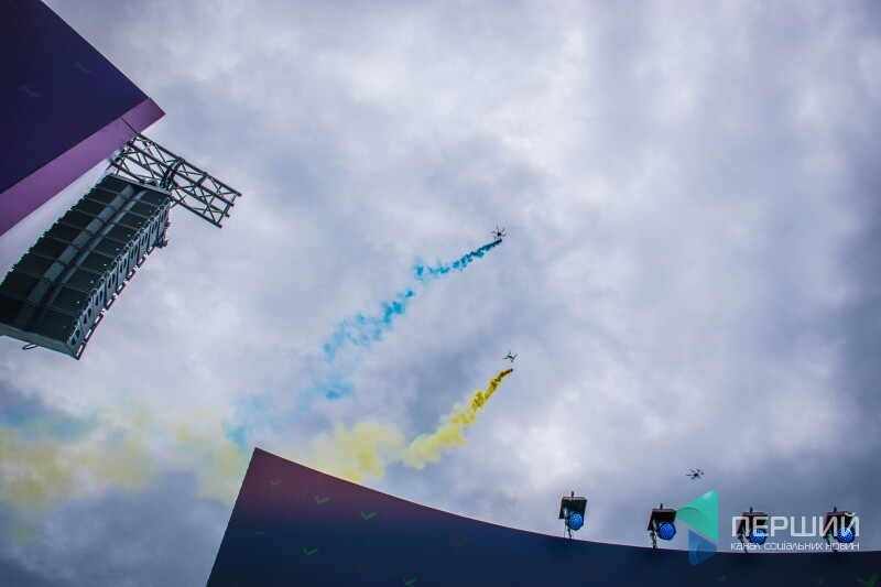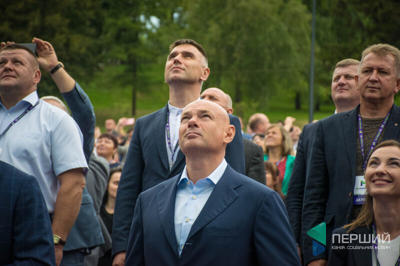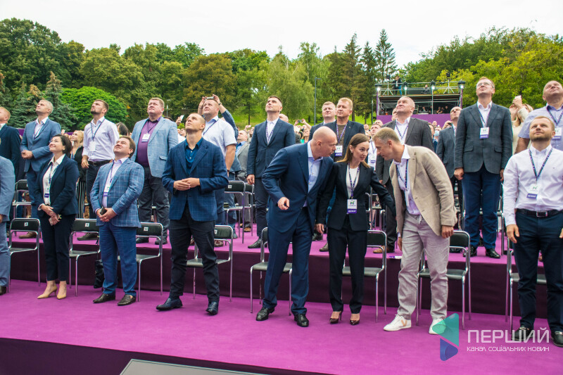Далі попід хмари запустять синьо-жовтий дим та піднімуть квадрокоптером партійне полотно прямісінько над сценою. Ігор Палиця, по праву руку якого стоятиме син Захар, по ліву – нардепка Ірина Суслова, і собі підніме голову догори подивитися, як же щемно…