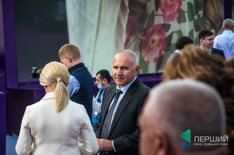 Уже після всіх під сцену фактично вбіжить ще один депутат Волиньради, бізнесмен і екс-митник Роман Микитюк, очевидно, мало не спізнився.