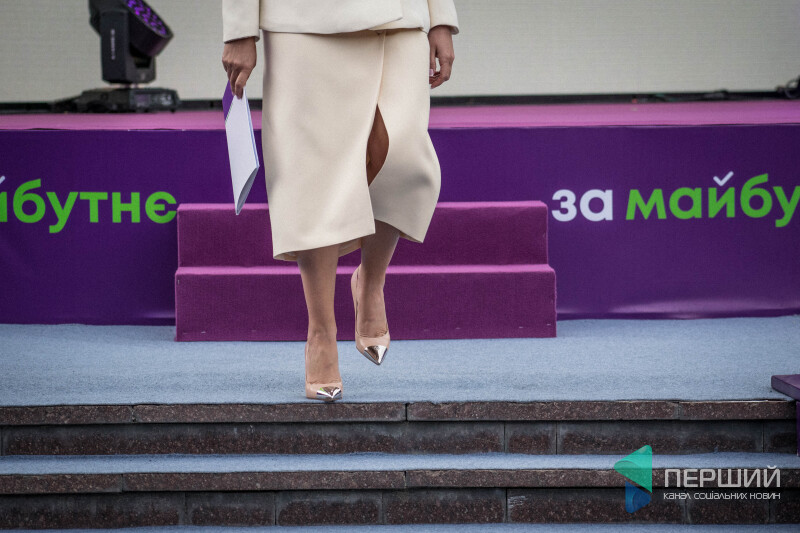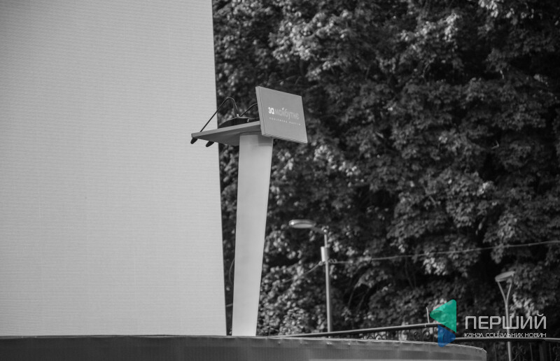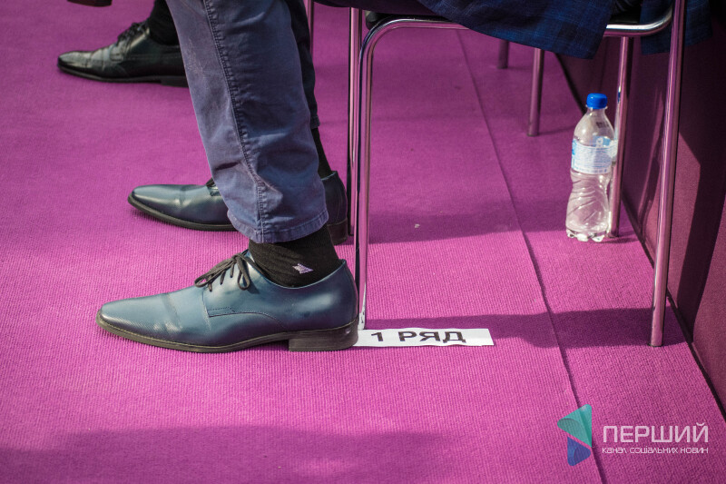 Ігор Палиця стрімким і впевненим кроком рушить на сцену. Всі ключові гасла, поки він говоритиме, мигатимуть лозунгами на фіолетовому екрані за його спиною. А обличчя спікера зблизька транслюватимуть на два великих екрани по боках сцени на Співочому полі.