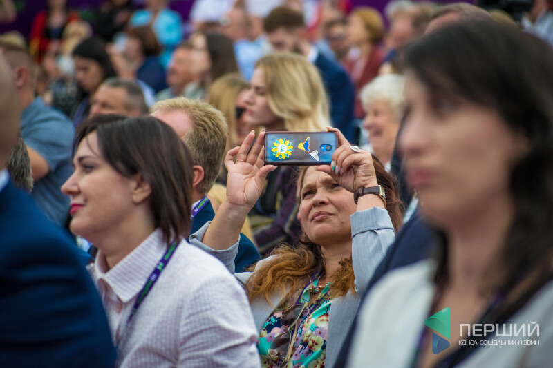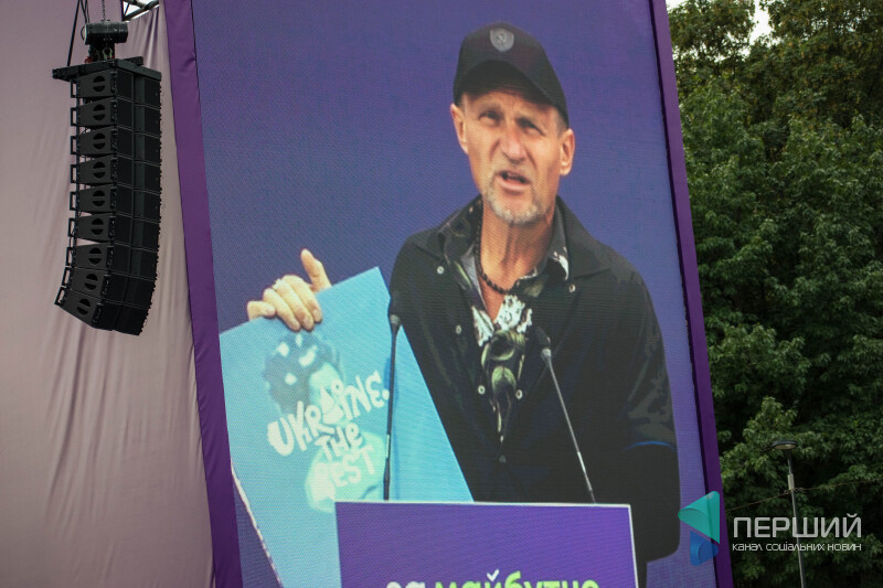 Козирі тут дісталися культовому музикантові Олегові Скрипці. Саме з цього місця колись стартував його фестиваль «Країна мрій», тому він одразу заговорив про знаковість і ностальгію. Згодом Олег Скрипка скаже, що політична сила Порошенка «розчавила цей фестиваль». Ні, він не став членом партії, не зібрався стати мером якогось міста, але він має що сказати людям, які сиділи під цими фіолетовими екранами.