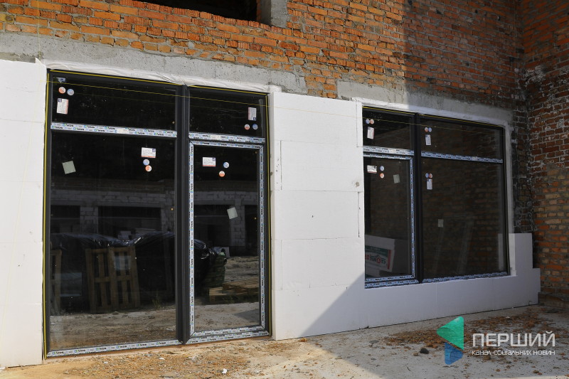 У першому виконують сантехнічні роботи. У другому триває оформлення фасаду та мембранна поклейка даху. Фасадні роботи відбуваються також у гаражах, а біля будівлі встановлюють паркан.
