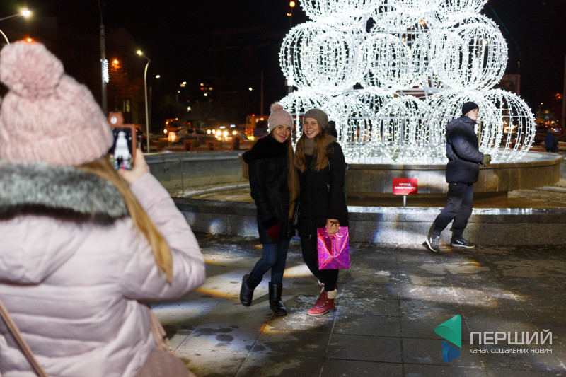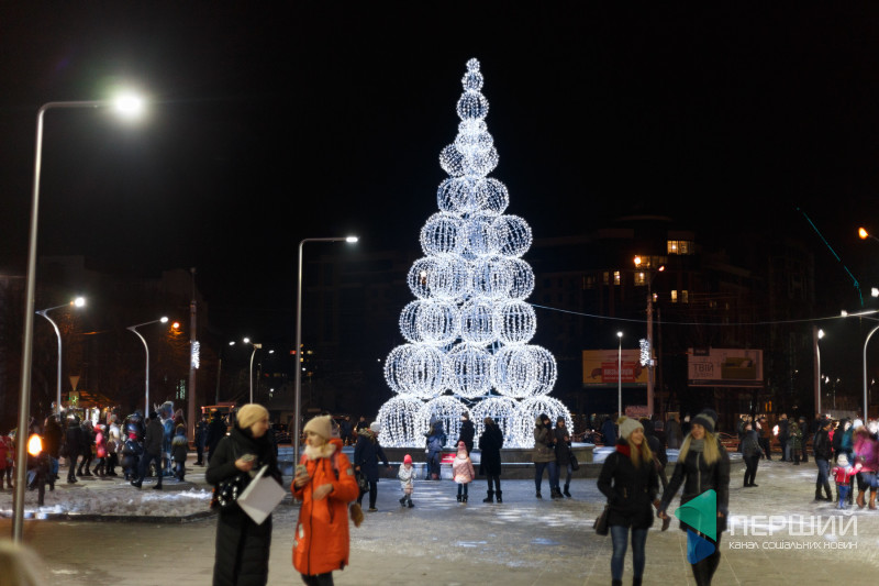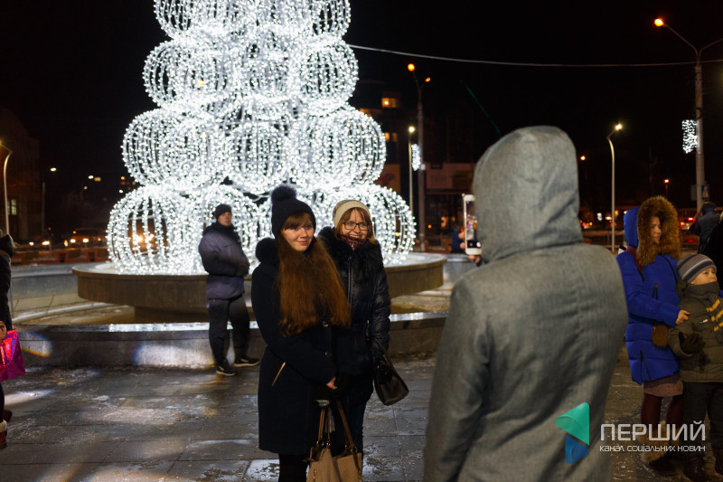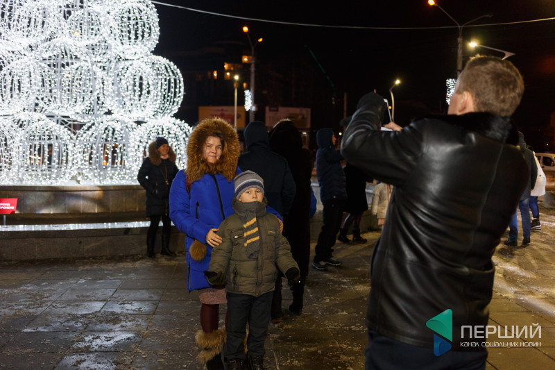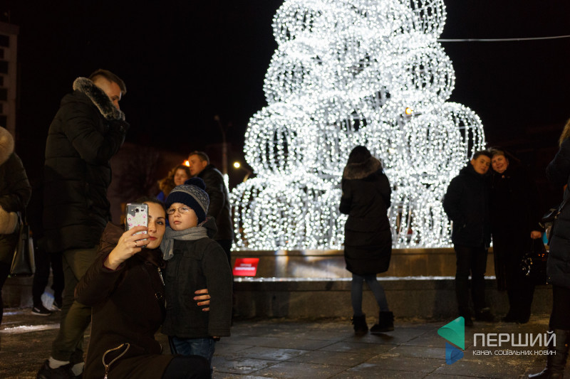 Святкове запалення вогнів на новорічній ялинці відбулося рівно о 17:30.