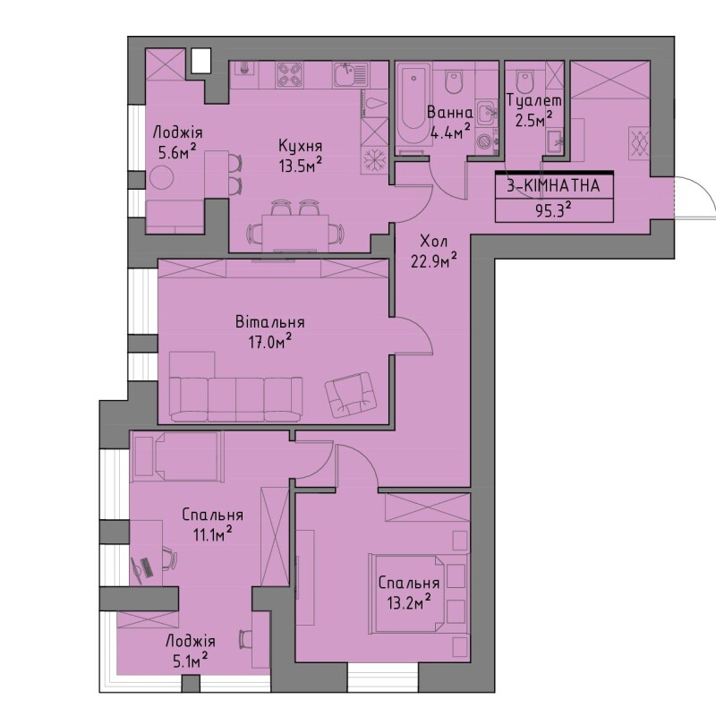 БК « Липинський» пропонує нашим потенційним клієнтам не оминути увагою планування трикімнатної квартири в житловому будинку « Липинський +», адже на дану квартиру діє знижена ціна - 14 500 грн./1м.кв.