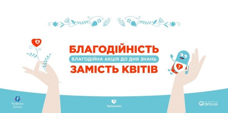 В Україні вп’яте стартувала акція «Благодійність замість квітів». Ініціатори – фонд «Таблеточки» – пропонують подарувати вчителю на День знань один букет від класу, а не від кожного учня. Натомість зекономлені кошти перерахувати онкохворим дітям.