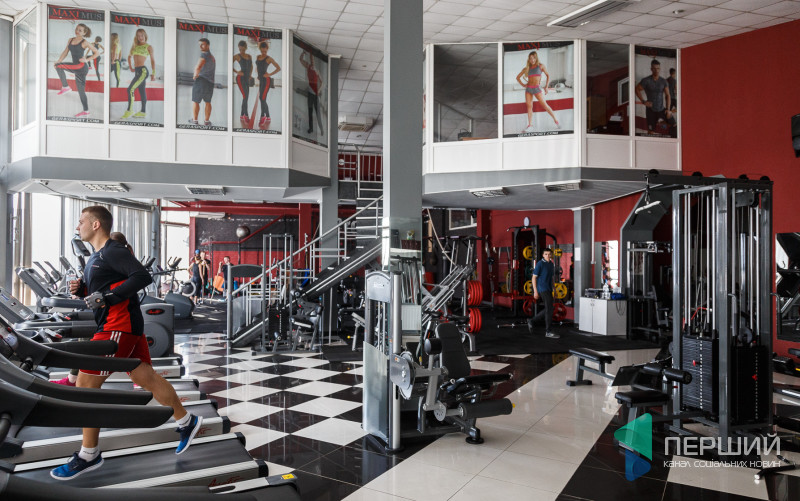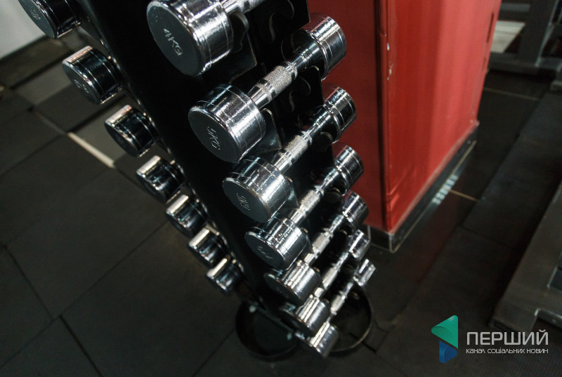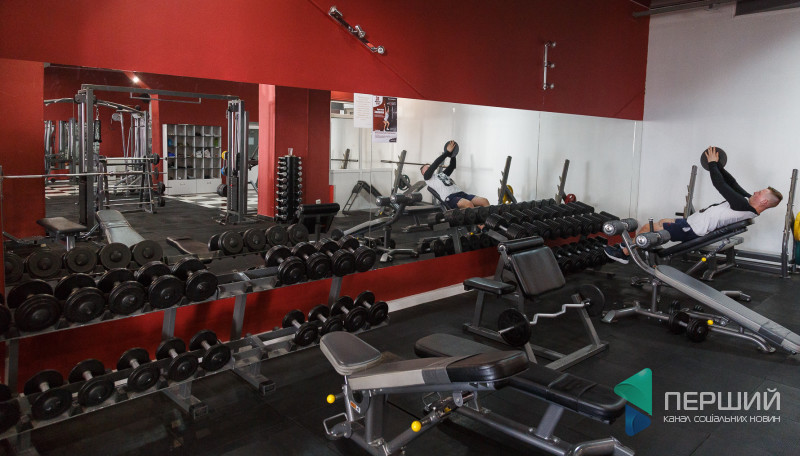 Тренажери, орбітреки, станки, грифи, «бліни», гирі, карімати: великий просторий зал заповнений спортивними снарядами.