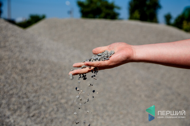 – Це щебінь, – Андрій Разумовський підходить до відсіку. - Він митий і має рівну фракцію. Подивіться, як однакові камінці… А це – пісок. Ми його возимо з Нетішина. Він чистий, однорідний промитий від глини і ракушок.