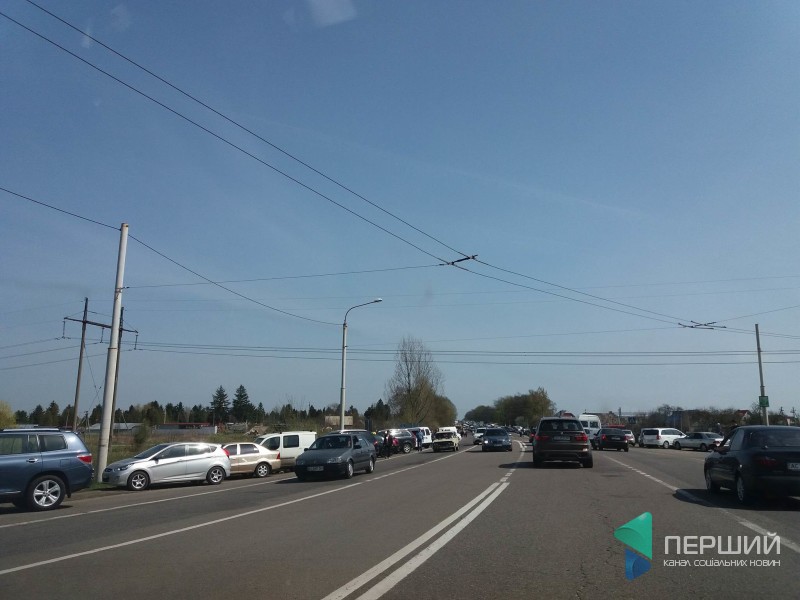 Про це Перший повідомили очевидці, які намагаються оминути величезний затор у неділю, 15 квітня.