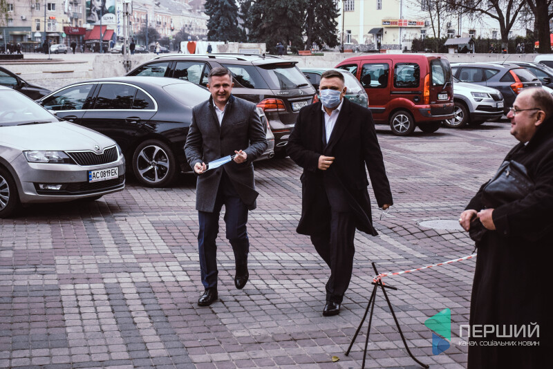 Під Палацом культури ажіотаж. Депутати Андрій Авраменко та Олександр Козлюк взяли кави у Сім23 і, не поспішаючи, рушили до будівлі. Цього дня у них - нова каденція. З нового - фракція. У минулій вони прийшли в Луцьку міську раду депутатами від “Солідарності”, у цій - від “Батьківщини”. І обом - дуже пасували кумачеві сердечка на масках.