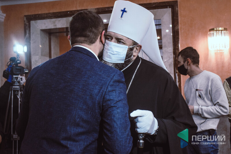 У норковій накидці та білих рукавицях до палацу заходить владика Михаїл, митрополит Луцький та Волинський від ПЦУ. За владикою несуть і букет багряних троянд. Згодом він довго тиснутиме руку меру Луцька Ігореві Поліщуку і щось зичитиме, зичитиме, зичитиме…