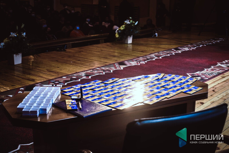 А на столику в кутку терпляче чекатимуть власників нові депутатські значки та свіжі посвідчення, які ще пахнуть друкарською фарбою. Посвідчення міського голови Ігоря Поліщука лежатиме окремо. І значок у всіх в білій картонній коробочці, в мера - у темно-синій, на кшталт тих, в яких дарують ювелірні вироби. Тим часом у ЗМІ опублікують інформацію про те, скільки коштувало дійство посвячення в депутати - 53 тис. грн. Не економили.