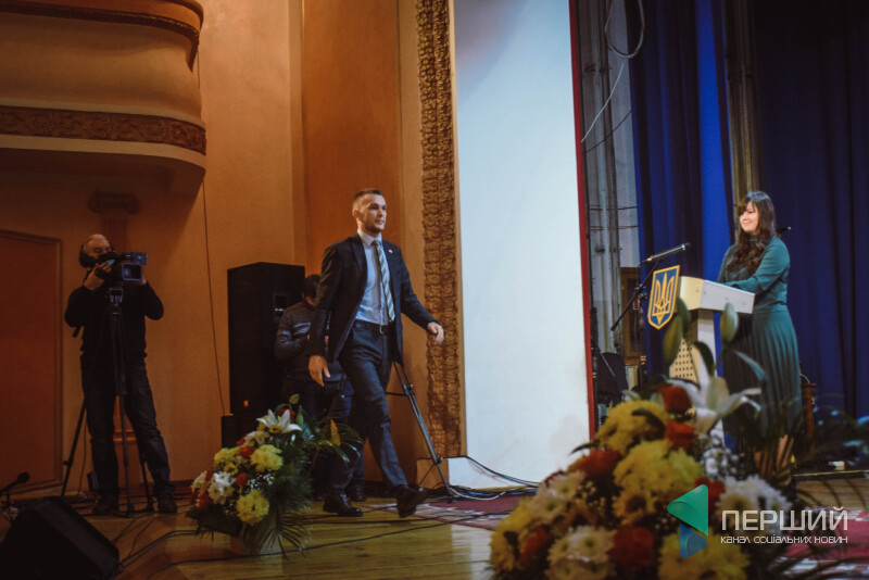 Коли оголошують Ігоря Поліщука, той кілька секунд ще сидить у кріслі, усміхається, далі впевненою ходою піднімається на сцену…