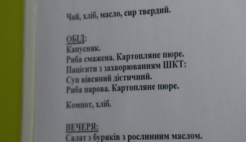 Ми поступили вчора, харчування ситне, корисне. Я за чоловіком доглядаю, мені виділяють порцію. Все дуже смачно, приносять нам в палату, бо мій чоловік не ходить. – Він, як військовослужбовець, то для нього посилене харчування, вистачає? – Вистачає, – розповіла жінка.