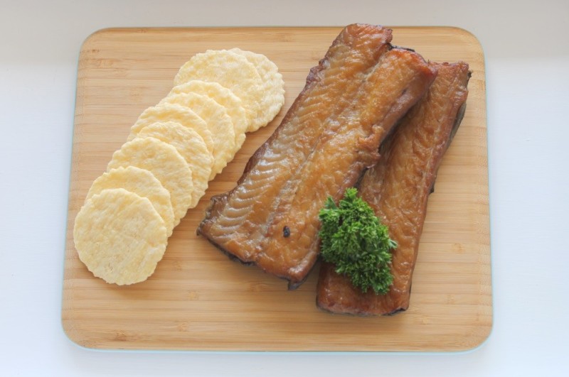 Порада: як правильно нарізати вугра. Для початку вугра потрібно розрізати вздовж хребта. А далі ставимо ніж під кутами 45° до вугра і відрізаємо шматок. Має вийти косий надріз.
