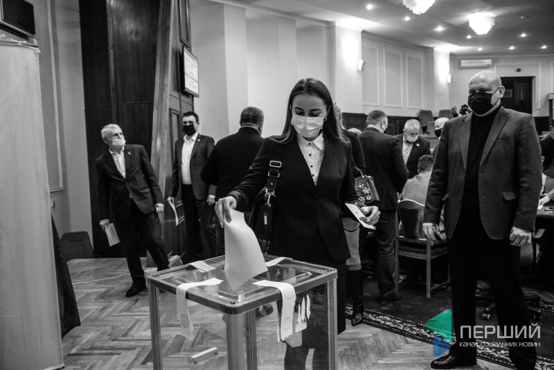Нічого особливого у процесі голосування не було. Жовтий бюлетень. Лічильну комісію очолює Володимир Бондар. В урну падали бюлетень і на більшості з них можна було бачити галочки «за».