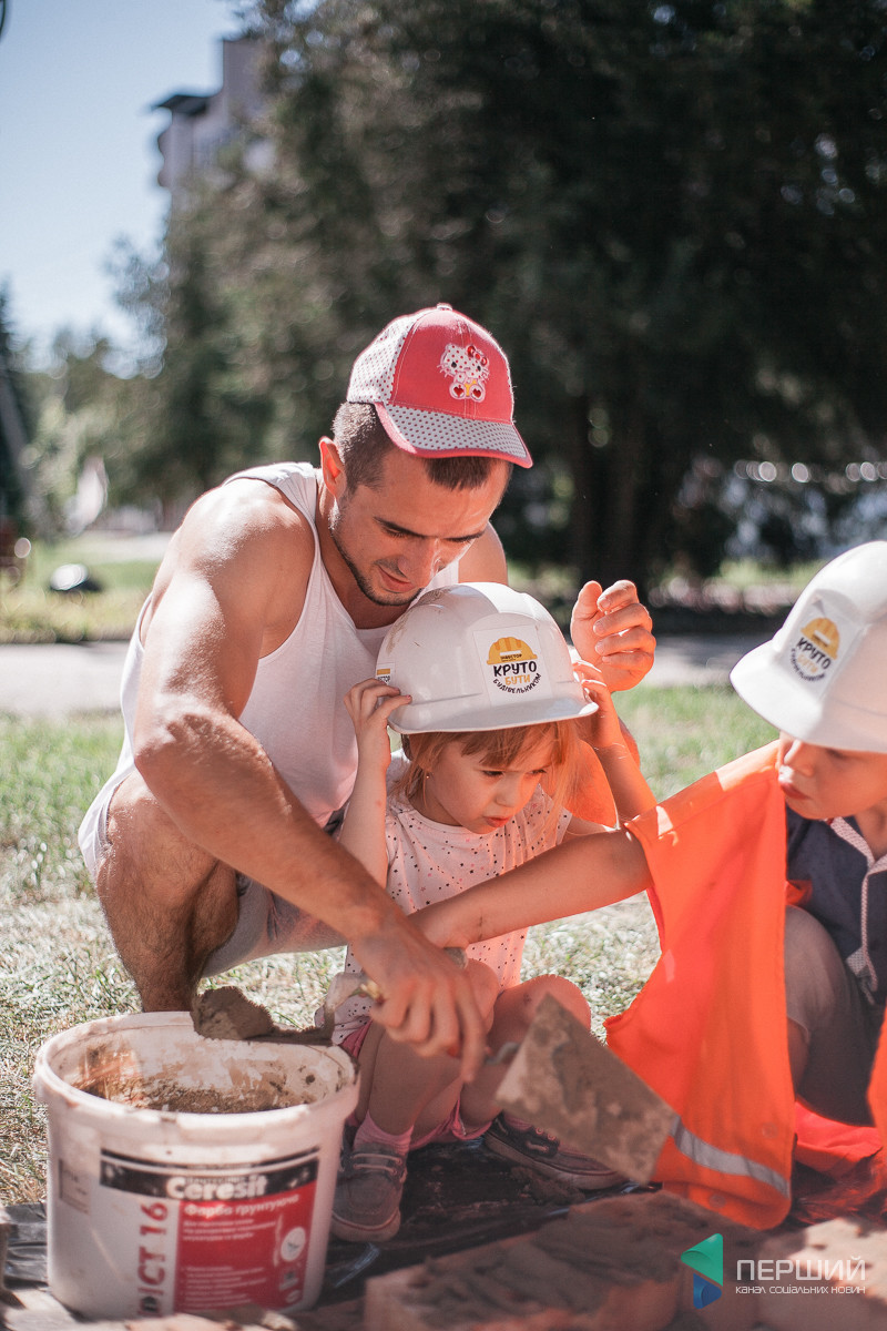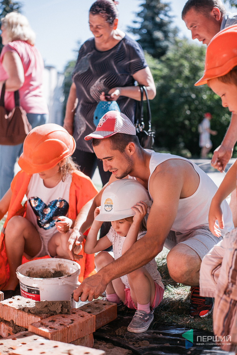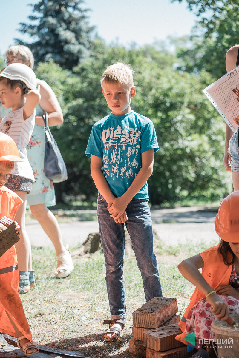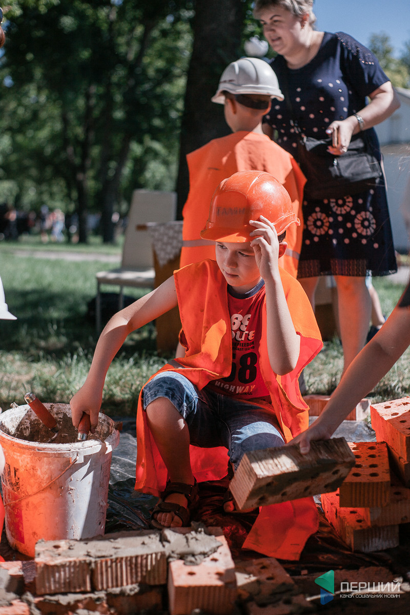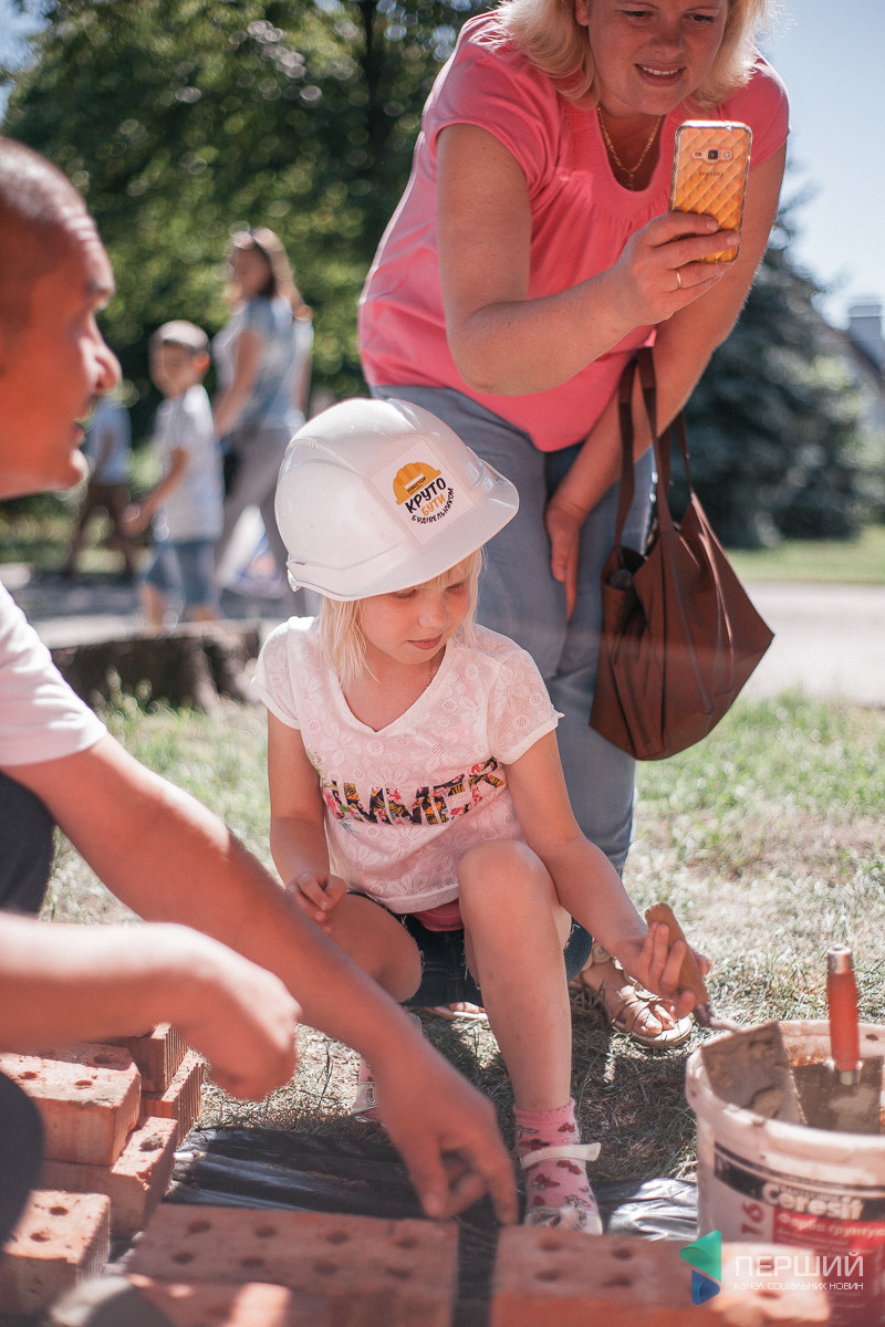 Як із користуватись будівельними інструментами та із цегли та цементу змурувати оселю, дітям показували менеджер з продажу квартир житлового комплексу «Парковий квартал» Будівельної компанії «Інвестор» Ольга Литвак та виконроб будівництва Олександр Поліщук.