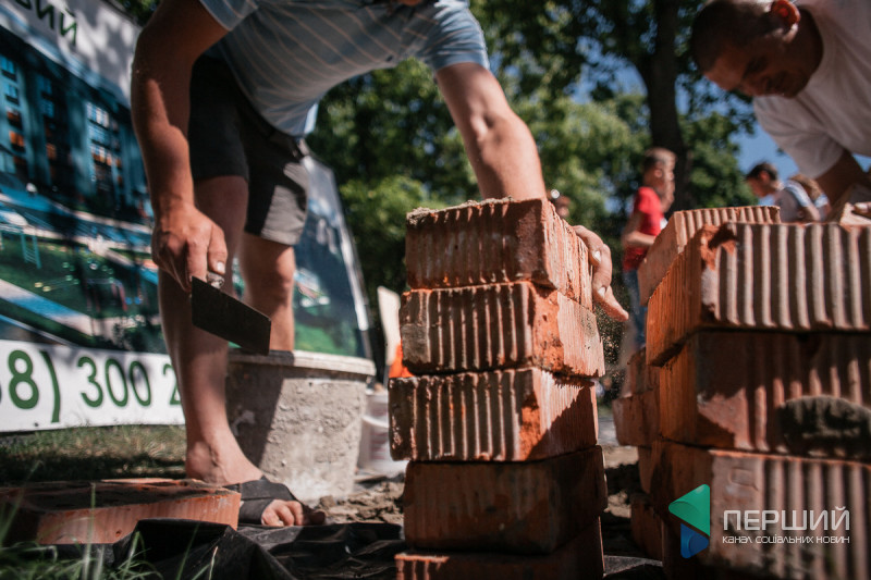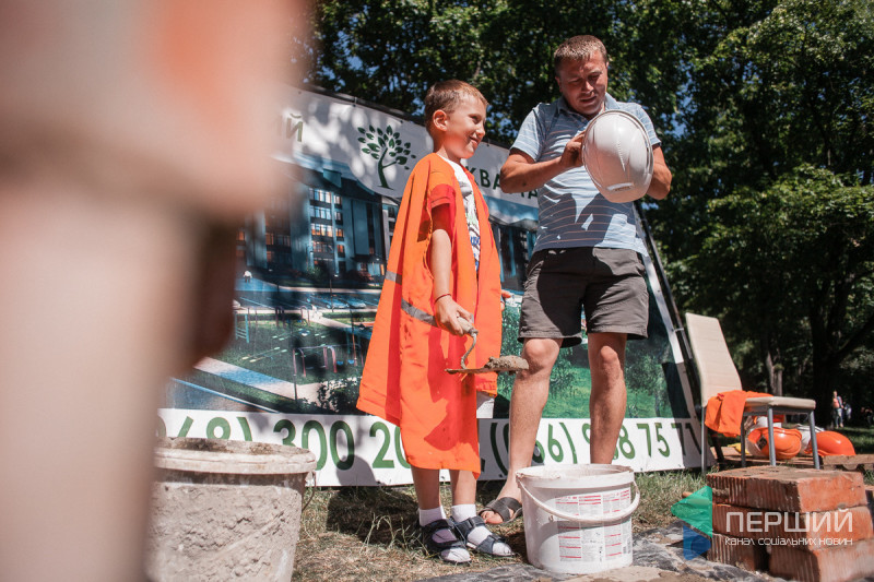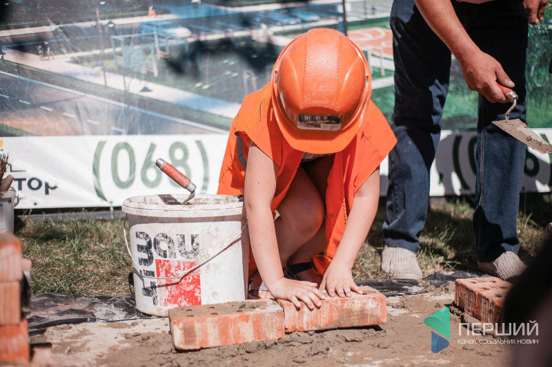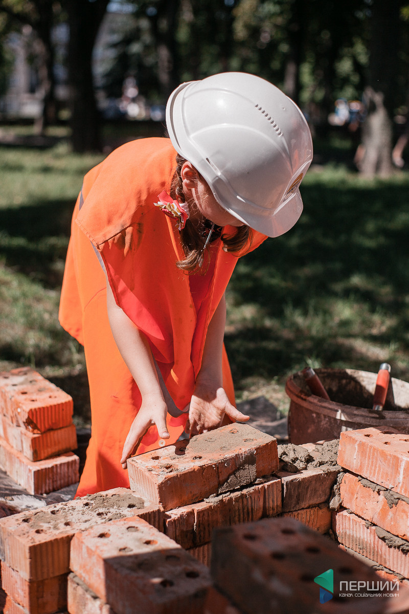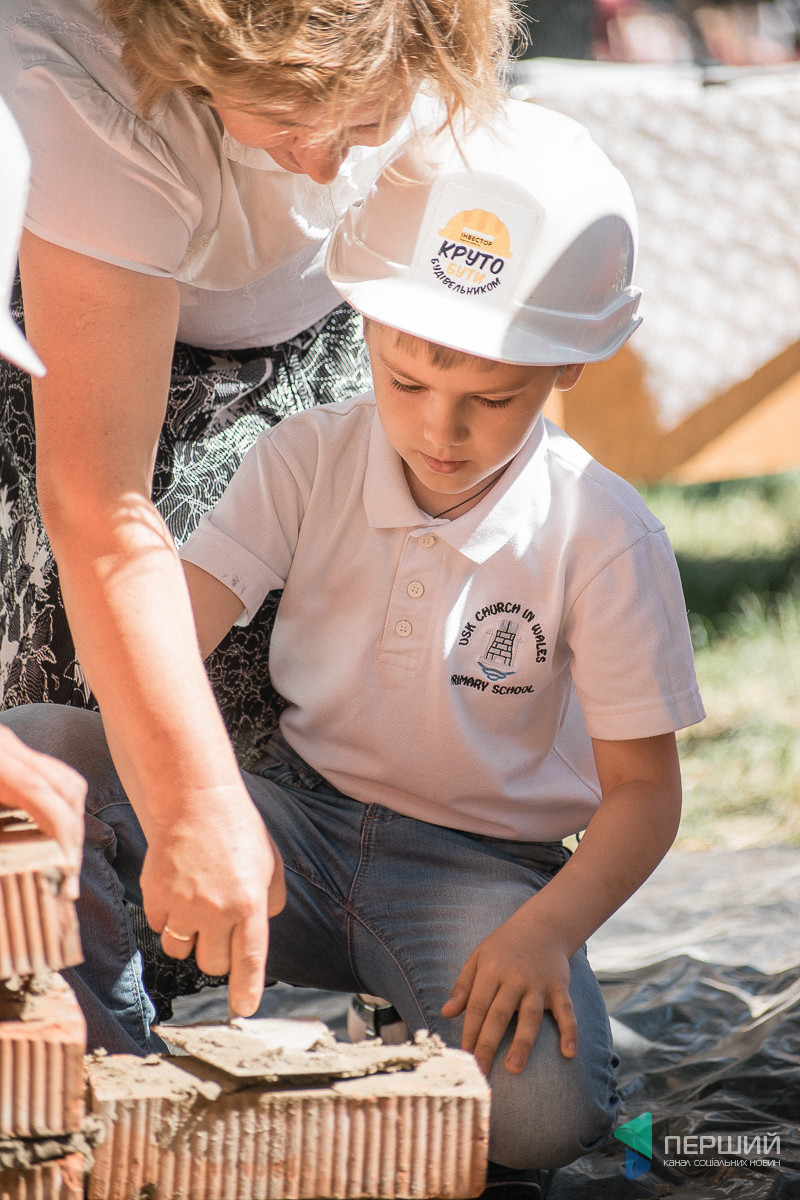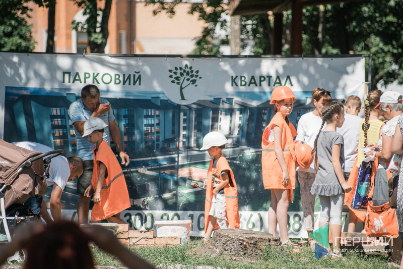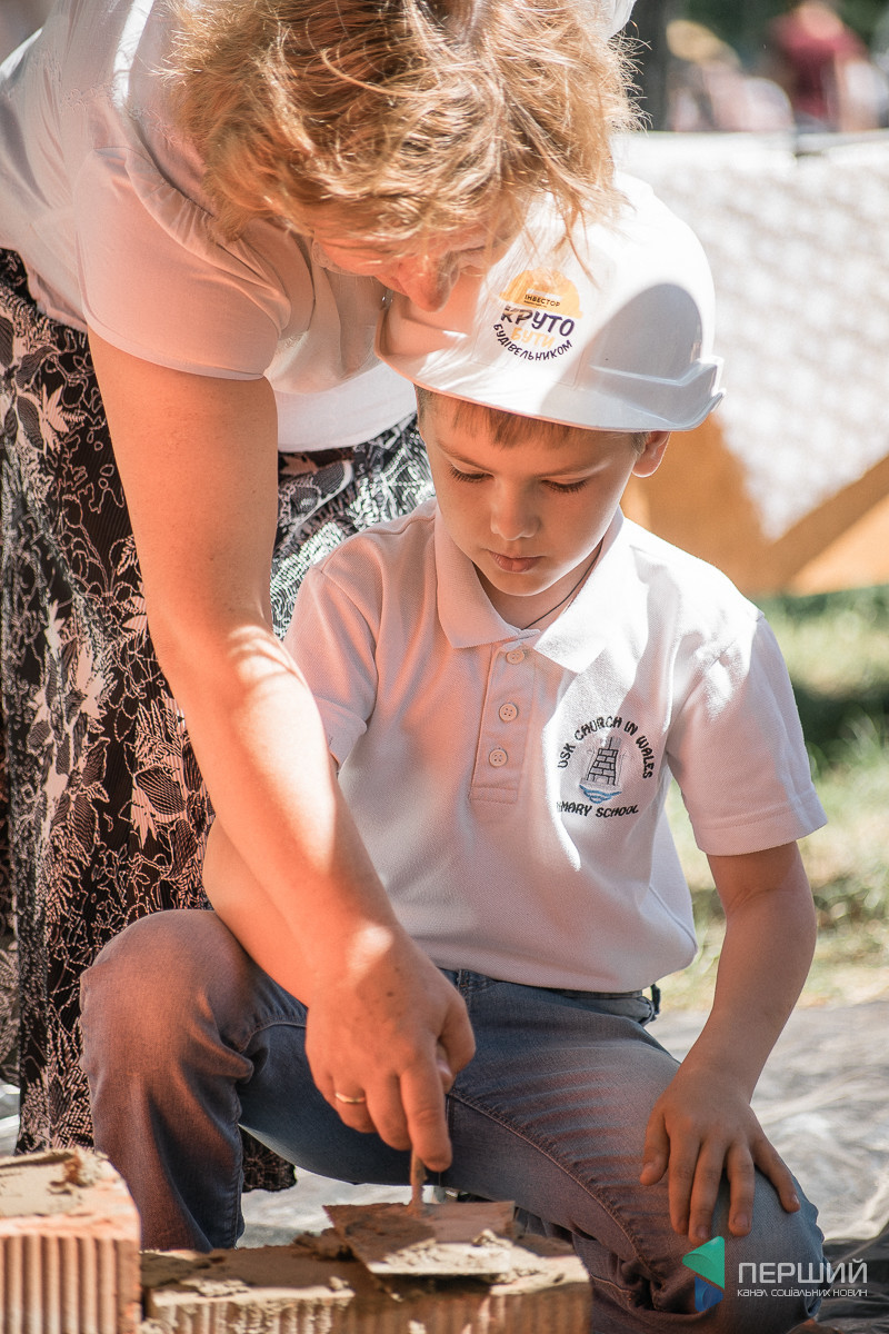 Як із користуватись будівельними інструментами та із цегли та цементу змурувати оселю, дітям показували менеджер з продажу квартир житлового комплексу «Парковий квартал» Будівельної компанії «Інвестор» Ольга Литвак та виконроб будівництва Олександр Поліщук.