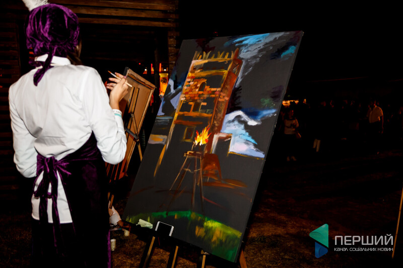 Хто приходив о 21:00 повз картину, бачив одне зображення, а хто пізніше – вже інше, доповнене. Кожен міг домалювати якийсь штрих. Палітра з фарбами лежала біля мольбертів постійно.