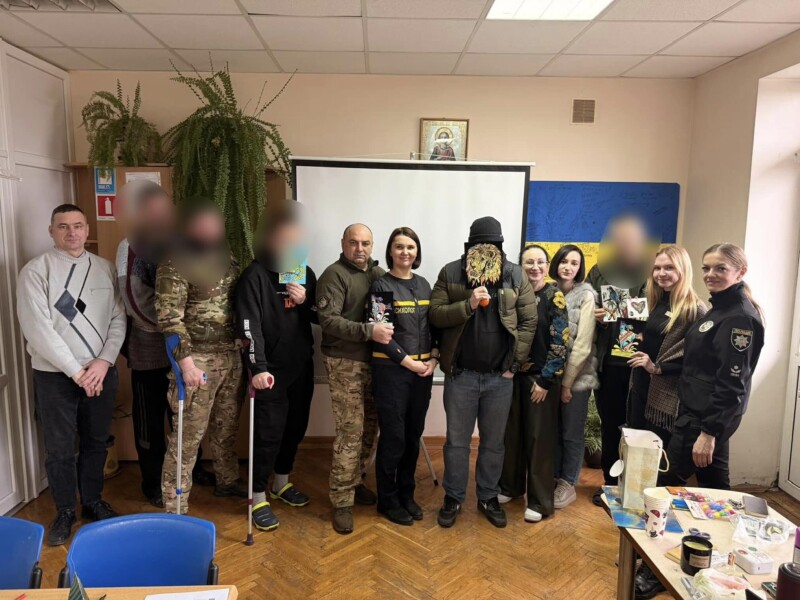 Окрім того, поліцейські разом з психологами ДСНС влаштували на базі медзакладу для ветеранів психологічний тренінг з елементами арттерапії. Учасники переглянули відео та створили малюнки незвичним способом. Усе це – аби зменшити рівень їх психоемоційного напруження, сформувати навички саморегуляції, розширити ресурсний стан через арттерапію.